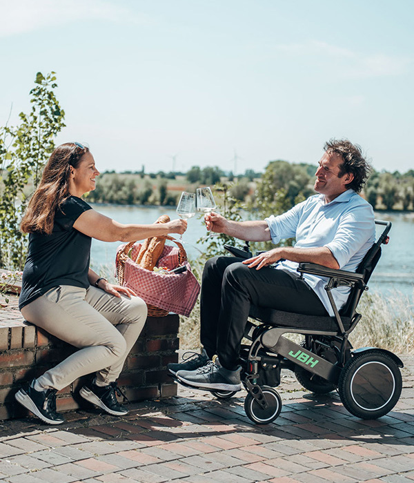 "Der Service ist super schnell. Am Ergoflix selber gefällt mir die Geländegängigkeit, die Wendigkeit, das Klappsystem, die Akku Reichweite und dass man die Akkus auch rausnehmen und laden kann. Ich bin mit dem Rolli sehr zufrieden und genieße meine zurück gewonnene Mobilität."