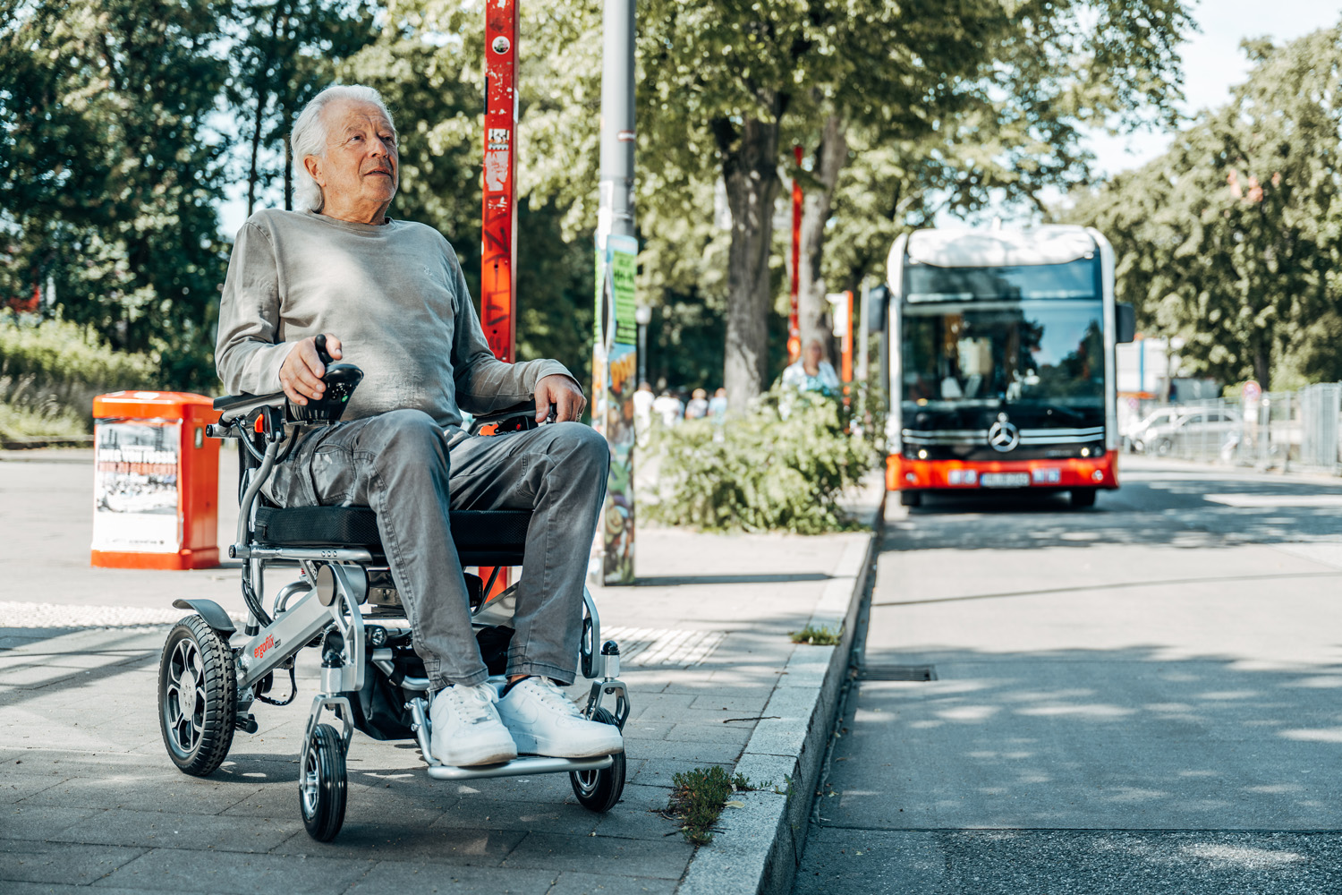 Alle Modelle zeichnen sich darüber hinaus durch ihre Wendigkeit aus. Während handelsübliche Elektrorollstühle recht sperrig sind, lässt sich der ergoflix auch im nicht-gefalteten Zustand bequem manövrieren.